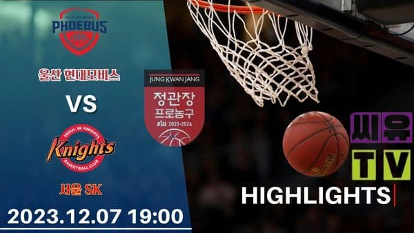 [KBL 하이라이트] 울산 현대모비스 : 서울 SK / 2023년 12월 07일 [스포츠하이라이트 CUTV]